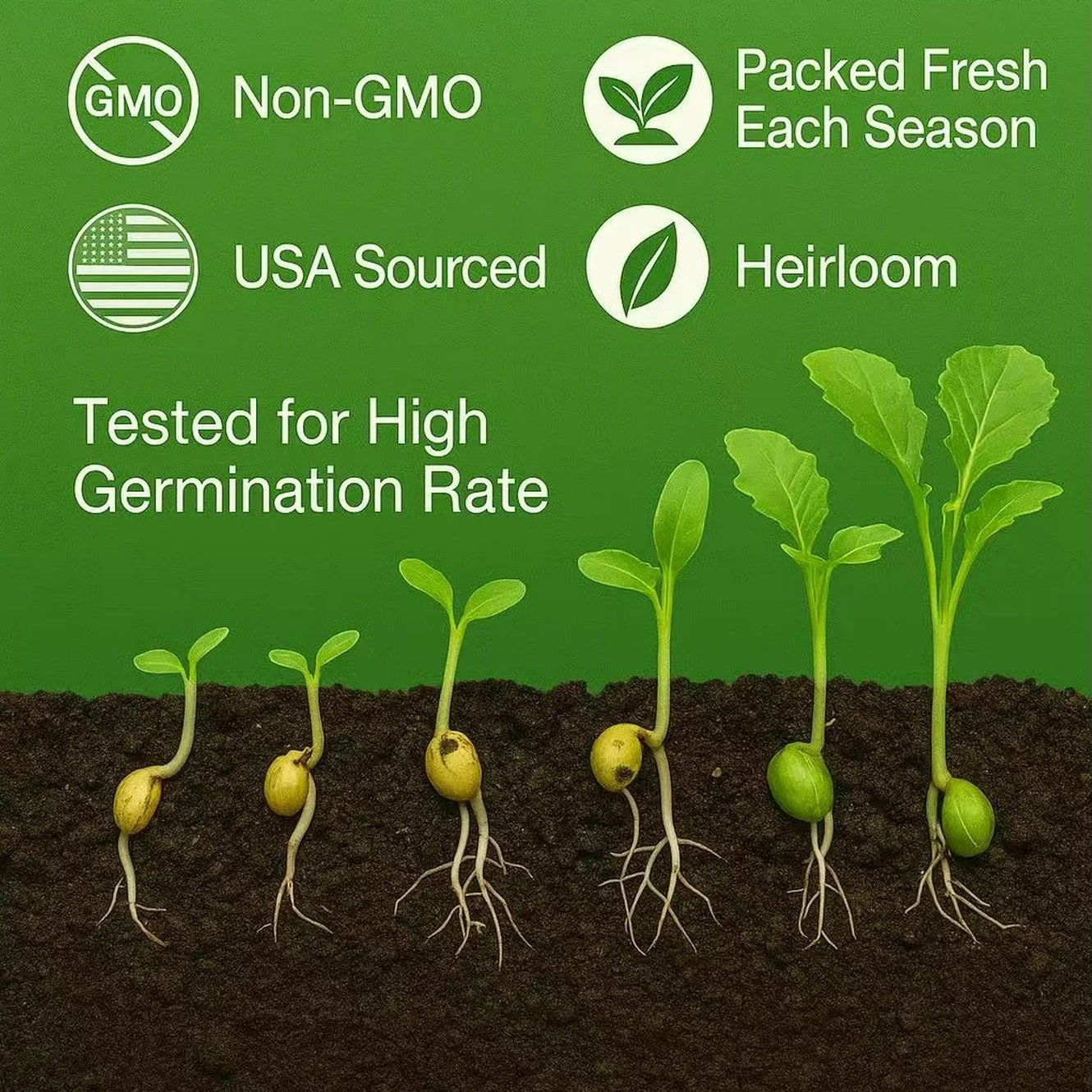 Seeds selected for 95%+ germination rate. Our varieties are durable and easy to establish in various soil types once acclimated to the outdoors.